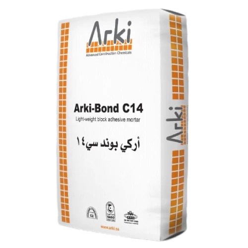 مونة لاصقة خفيفة الوزن اركي بوند سي 14، براند اركي، مونة لاصقة أسمنتية ذات طبقة رقيقة معدلة بالبوليمر تستخدم في تثبيت الكتل الهوائية وغيرها من كتل ووحدات البناء المماثلة، تم تعديلها كيميائيًا ولا يتطلب سوى إضافة الماء النظيف لتوفير مادة لاصقة رفيعة عالية الأداء، لتعزيز الخواص الميكانيكية والعزل الحراري، وتوفير خصائص التطبيق الأكثر فعالية، ذات قابلية تشغيل ممتازة.