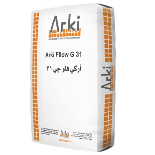 اركي فلو جي 31 من شركة اركي، جراوت أسمنتي غير قابل للانكماش متعدد الأغراض، يتكون من مزيج من الأسمنت البورتلاندي، الركام المدروج، والإضافات الكيميائية الخاصة، يتمتع بقدرة على مقاومة الظروف البيئية القاسية مثل الرطوبة والحرارة، يستخدم في ملء الفجوات بين العناصر الخرسانية مسبقة الصب، وبين الأساسات الخرسانية والألواح الفولاذية، ملء المسافة بين قاعدة الأساس والأعمدة الخرسانية مسبقة الصب.