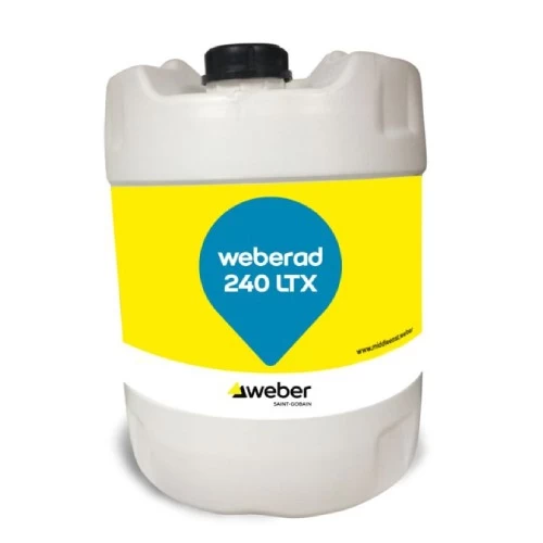 عامل ربط لاتكس SBR للخرسانة Weberad 240 LTX، براند سودامكو- ويبر، يستخدم على جميع الأسطح مثل الأرضيات الصناعية وتصليح الخرسانة وخزانات مياه الشرب حتى في الأجواء الرطبة كعامل ربط للخرسانة والملاط ، غير قابل للتآكل وغير سام، مقاوم للوقود والزيوت والملح، ذو انكماشية محدودة، يمتاز بسهولة التطبيق والإلتصاق العالي وزيادة العزل المائي والمتانة.