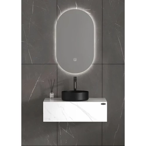 مغسلة ديكور رخام صناعي قطعتين مقاس 60 سم، عرض 50 سم ، عمق 25 سم مع مرايا ليد، لون ابيض