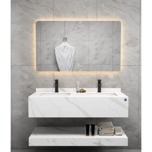 مغسلة حوضين مع مرايا ليد رخام صناعي...