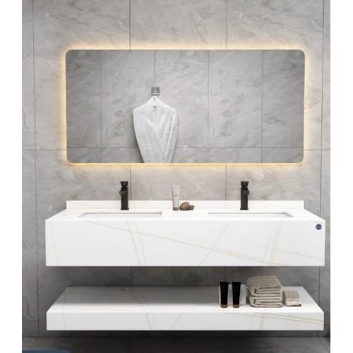 مغسلة حمام رخام صناعي حوضين مع مراي...