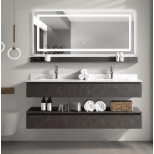 مغسلة بلون خشب رمادي، مقاس 60 سم، تصميم أنيق مزودة بمرايا LED