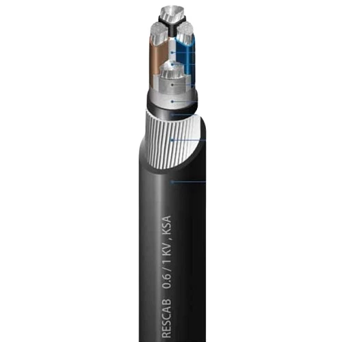 كيبل كهرباء المنيوم مجدول اربع خطوط 300ملم 0.6/1 كيلوفولت، مسلح SWA، معزول ومغلف PVC، طول بكرة 250 متر | رسكاب