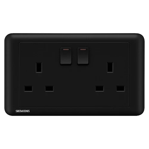 فيش كهرباء مزدوج 13 امبير مع مفتاح تشغيل ومؤشر، اسود، 86×146مم، 250 فولت، ماركة سيمنز (دلتا سيتا). مصنوع من مواد عالية الجودة تتحمل الحرارة العالية والتآكل والمواد الكيميائية