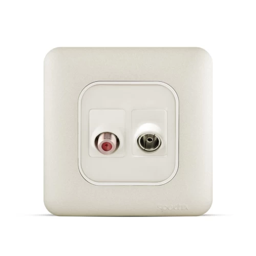 فيش تليفزيون مائل مفرد + فيش دش مائل مفرد. من انتاج شركة اكفأ الحديثة (سبكترا) طبقا للمواصفات والمقاييس السعودية والبريطانية. مصنوعة من مواد مبتكرة عالية الجودة تقاوم الحرارة والإنصهار، كما أنها مقاومة للحريق والكسر والتآكل والزيوت والمواد الكيميائية. ايضا تتميز بجودة مكوناتها الداخلية فهي مكونة من النحاس النقي المُطعم بالفضة لضمان أقصى قدر من الكفاءة والتوصيل الكهربائي. متوفرة بعدة تصميمات والوان متعددة لتناسب جميع الاحتياجات والاستخدامات المختلفة بضمان يصل إلى 25 عام.