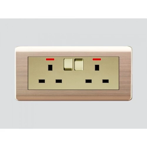 فيش ثلاثي مزدوج بمفتاح ولمبة بيان ذهبي مصنوع من مواد عالية الجودة، يجمع بين الأداء العملي والتصميم العصري، مع لمبة بيان تُظهر حالة التشغيل. يُعد خيارًا مثاليًا للمساحات الداخلية الراقية. متوفر بألوان مختلفة تناسب جميع الأذواق.