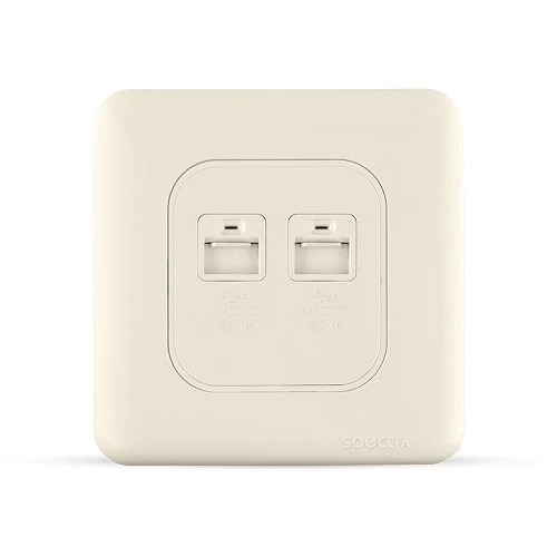 فيش (مخرج) يو اس بي مزدوج، للشحن السريع لجميع الهواتف الذكية، من انتاج شركة اكفأ الحديثة (سبكترا) طبقا للمواصفات والمقاييس السعودية والبريطانية. تم تصنيعها من مواد مبتكرة عالية الجودة تقاوم الحرارة والإنصهار وضغط التيار العالي، كما أنها مقاومة للحريق والكسر والتآكل والزيوت والمواد الكيميائية. ايضا تتميز بجودة مكوناتها الداخلية فهي مكونة من النحاس النقي المُطعم بالفضة لضمان أقصى قدر من الكفاءة والتوصيل الكهربائي. متوفرة بعدة قياسات وتصميمات والوان متعددة لتناسب جميع الاحتياجات والاستخدامات المختلفة بضمان يصل إلى 25 عام.