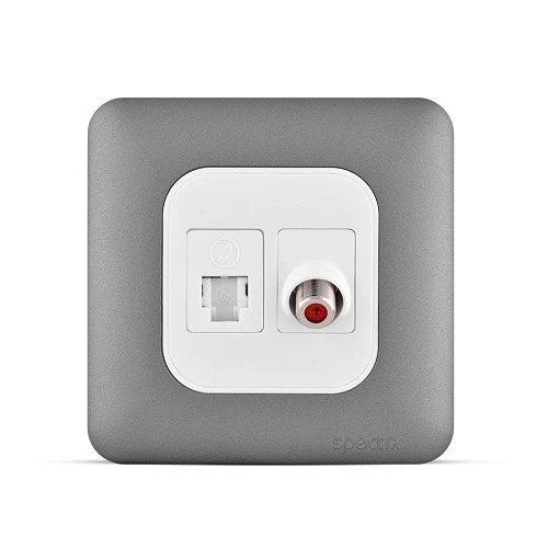 فيش تليفون مفرد نظام امريكى جاك 3 خط + فيش دش مائل مفرد، لون فضي غامق، 7×7 سم | سبكترا