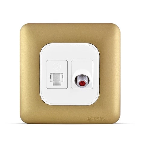 فيش تليفون مفرد نظام امريكى جاك 3 خط + فيش دش مائل مفرد، لون ذهبي، 7×7 سم | سبكترا
