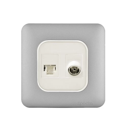 فيش تليفون مفرد نظام امريكى جاك 3 خط + فيش تليفزيون مائل مفرد، لون فضي فاتح، 7×7 سم | سبكترا