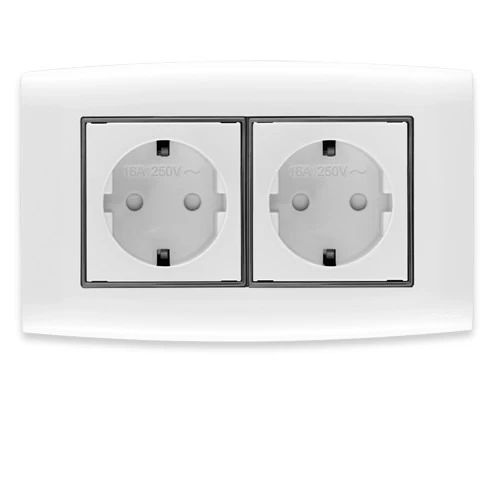 فيش شوكو مزدوج مع سدادات حماية 16 امبير أمنية مقاس 7×14 سم اللون أبيض بحلقة سوداء براند الفنار ، مجهزة بإطار معدني لقوة التحمل. وهي مختومة بعلامة الجودة وتأتي مع ضمان استبدال المنتج.
