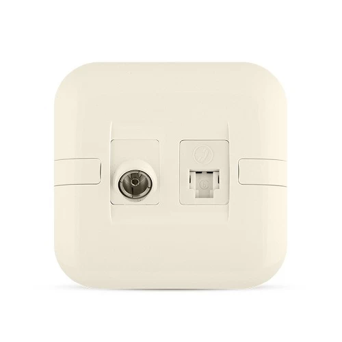 فيش تليفون مفرد نظام امريكى جاك 3 خط + فيش تليفزيون مائل مفرد، بيج، مقاس 7×7 سم | سبكترا
