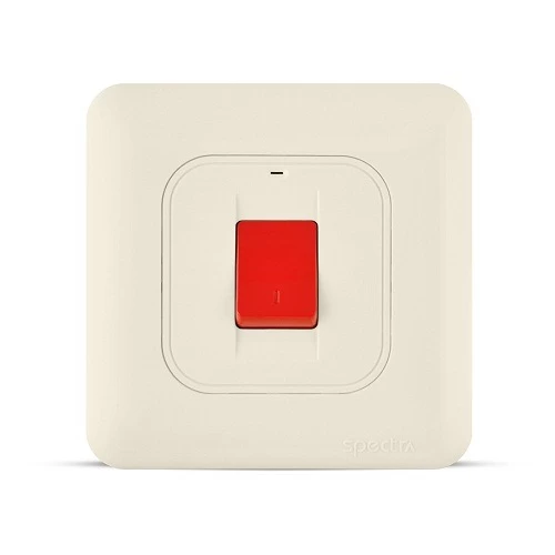 مفتاح مكيف 45 أمبير ثنائي القطب مع مؤشر لمبة ليد، لون بيج، مقاس 7×7 سم، 250 فولت، تمتاز بمقاومتها للحريق والكسر والتآكل، من انتاج شركة اكفأ الحديثة (سبكترا) طبقا للمواصفات والمقاييس السعودية والبريطانية.