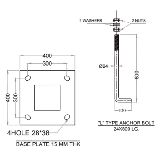 عمود انارة حدائق، مقاس قاعدة التثبيت 400×400 مم، طول 12 متر، طاقة 200 واط