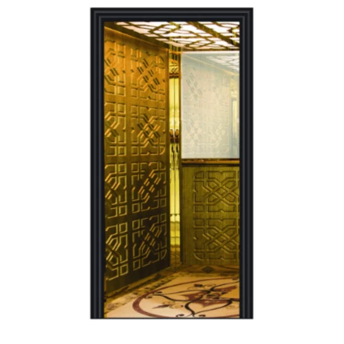 كابينة مصعد PVC مرآة نصفية، زوايا ذهبية، وأرضية فن...