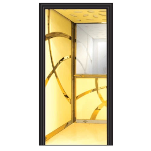 كابينة مصعد PVC مرآة نصفية، زوايا ذهبية، وأرضية فن...
