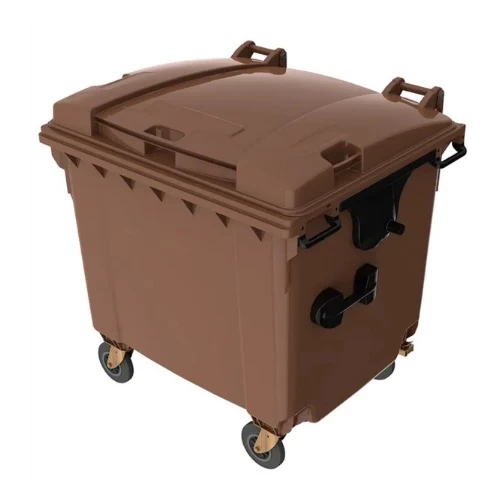حاوية نفايات بلاستيك لون بني سعة 1100 لتر مقاس 1.37×1.07×1.33 متر