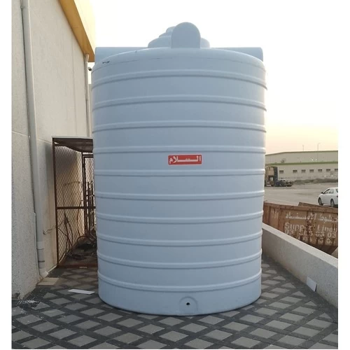 خزان مياه عمودي انتاج مصنع السلام للخزانات، مصنوع من البولى ايثيلين الذي يتميز بمقاومته العالية للمواد الكيميائية والاملاح معزول اربع طبقات ناعم من الداخل والخارج ومعالج ضد الطحالب والبكتريا مانع لتسريب اشعة الشمس والاشعة فوق البنفسجية خفيف الوزن مقاوم للصدمات وبه غطاء محكم لا يسمح بدخول الغبار والاتربة والحشرات، متوفر بانواع وسعات مختلفه ليناسب الاحتياجات المختلفه.