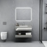 مغسلة رخام صناعي مع انارة لون رمادي مقاس 100 سم، تصميمها ينبض بالرقي ليمنحك إحساسًا بالتميز.