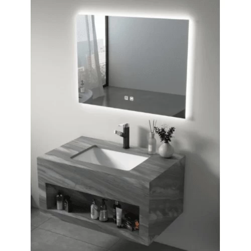 مغسلة رخام صناعي مودرن مع رف و مرايا، حيث انها مزودة بإنارة ليد في منتصف المغسلة لتعطي مظهر انيق كما انها مصنعة من مواد عالية الجودة، مما يجعلها مقاومة للخدوش والبقع والتصدعات. تتميز بمظهرها الجذاب والأنيق وتوفير مظهر فاخر وعصري على ديكور أي حمام. كما تتوفر بأشكال وأحجام وألوان مختلفة لتناسب جميع الأذواق والأنماط الديكورية.