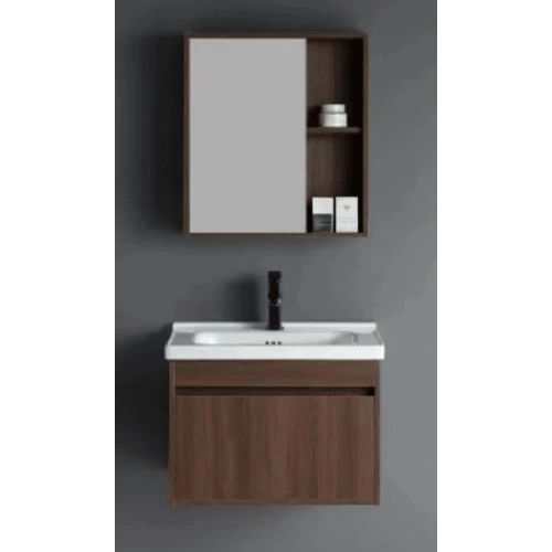 خزانة حمام خشب رمادي مع مغسلة، مقاس 60 سم، تصميم بسيط مزودة بمرايا وصيدلية