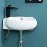 مغسلة معلقة خزف لون ابيض مقاس 30×50 سم، تتميز بمتانتها الاستثنائية بفضل المعالجة الكيميائية الخاصة.