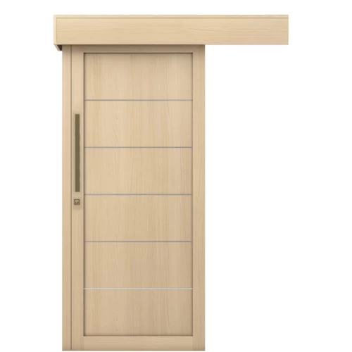 باب سحاب من الخشب البلاستيكي (WPC)، مقاس 600×600 سم، السمك 6 سم، لون خشب فاتح، رقم المنتج M01