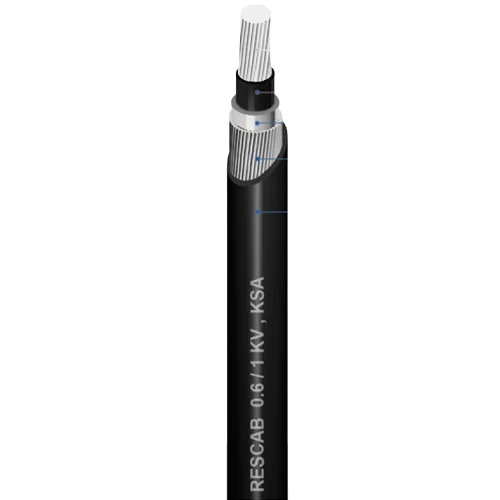 كبيل مدرع بأسلاك المنيوم مجدول (AL/PVC/AWA/PVC)، خط واحد، مقاس 630 مم2، جهد منخفض 0.6/1 ك.ف، من انتاج شركة كابلات البحر الاحمر (رسكاب)، مناسبًا للاستخدامات الداخلية والخارجية حيث يوجد خطر حدوث أضرار ميكانيكية.