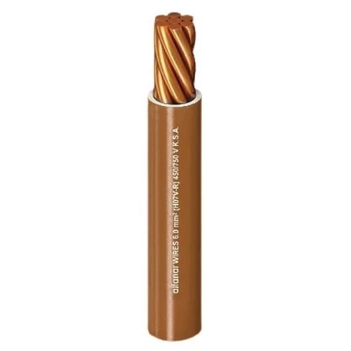 لفة سلك كهرباء نحاس مجدول 500 ملي 450/750 فولت معزول PVC، لون العزل بنى، بالاضافة الي المقاومة العاليه للماء والرطوبة. مخصص للاستخدام في التركيبات الثابتة في لوحات التحكم والآلات والأجهزة ذات درجة حرارة تشغيل عالية، وفقاً لأحدث المعايير البريطانية ومعايير اللجنة الكهروتقنية الدولية، من انتاج شركة الفنار.