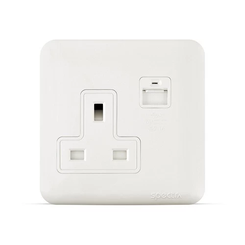 فيش مفرد 13 أمبير مع مدخل يو اس بي 2.1 امبير، لون ابيض، 7×7 سم | سبكترا
