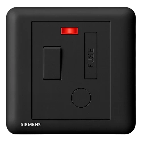مخرج فيوز كهربائي 13 أمبير ثنائي القطب مع مفتاح تشغيل ومؤشر،مقاس 86×86 مم، لون اسود، ماركة سيمنز (دلتا سيتا). يستخدم لتوصيل الأجهزة الكهربائية ذات الاستهلاك العالي بشكل دائم، وغالبا يكون مخفيا عن المستخدم ولا يُفصل منه الجهاز يوميا.
