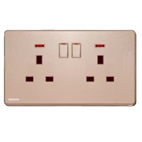 فيش مزدوج 13 امبير مع مفتاح تشغيل ومؤشر ضوئي نيون، ذهبي وردي، 86×146مم، 250 فولت، ماركة سيمنز (دلتا أرينا)