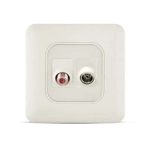فيش تليفزيون مائل مفرد + فيش دش مائل مفرد. من انتاج شركة اكفأ الحديثة (سبكترا) طبقا للمواصفات والمقاييس السعودية والبريطانية. مصنوعة من مواد مبتكرة عالية الجودة تقاوم الحرارة والإنصهار، كما أنها مقاومة للحريق والكسر والتآكل والزيوت والمواد الكيميائية. ايضا تتميز بجودة مكوناتها الداخلية فهي مكونة من النحاس النقي المُطعم بالفضة لضمان أقصى قدر من الكفاءة والتوصيل الكهربائي. متوفرة بعدة تصميمات والوان متعددة لتناسب جميع الاحتياجات والاستخدامات المختلفة بضمان يصل إلى 25 عام.