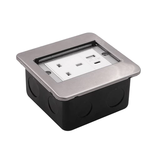 علبة افياش ارضية باب واحد فيش ثلاثي 13 امبير، مخرج يو اس بي، مخرج تايب سي، ابعاد 118×118 مم