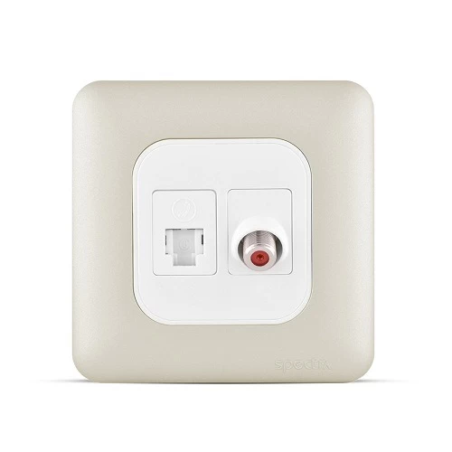 فيش تليفون مفرد نظام امريكى جاك 3 خط + فيش دش مائل مفرد. من انتاج شركة اكفأ الحديثة (سبكترا)ا طبقا للمواصفات والمقاييس السعودية والبريطانية. مصنوعة من مواد مبتكرة عالية الجودة تقاوم الحرارة والإنصهار، كما أنها مقاومة للحريق والكسر والتآكل والزيوت والمواد الكيميائية. ايضا تتميز بجودة مكوناتها الداخلية فهي مكونة من النحاس النقي المُطعم بالفضة لضمان أقصى قدر من الكفاءة والتوصيل الكهربائي. متوفرة بعدة تصميمات والوان متعددة لتناسب جميع الاحتياجات والاستخدامات المختلفة بضمان يصل إلى 25 عام.