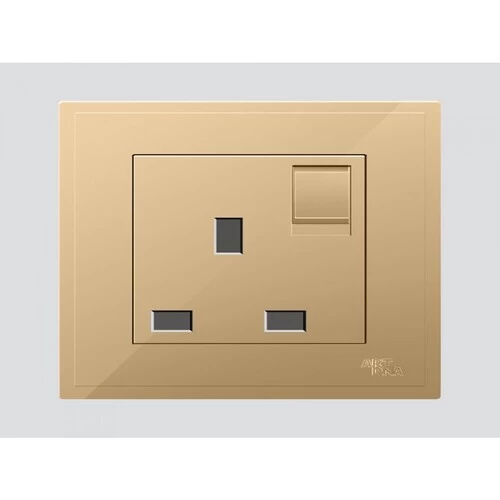 فيش كهرباء بمفتاح ثنائى القطب 13 أمبير  الفنار موديل أمنية المقاس  7x7 اللون ذهبى بحلقة ذهبى