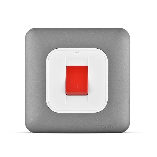 مفتاح مكيف 45 أمبير ثنائي القطب مع مؤشر ليد، لون فضي غامق، 7×7 سم، 250 فولت، من انتاج شركة اكفأ الحديثة (سبكترا) طبقا للمواصفات والمقاييس السعودية والبريطانية، تم تصنيعها من مواد مبتكرة عالية الجودة تقاوم الحرارة والإنصهار وضغط التيار العالي.