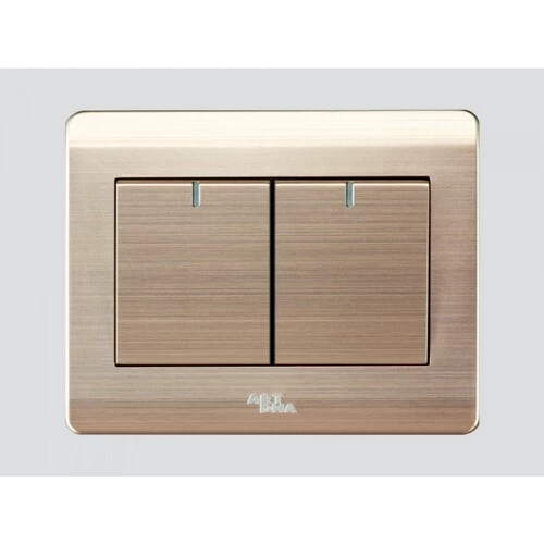 مفتاح كبس مزدوج ذهبي مصنوع من مواد متينة وعالية الجودة، يتميز بلونه الذهبي اللامع وتصميمه العملي. يتيح التحكم بمصدرين مختلفين للإضاءة من مكان واحد بسهولة، مما يجعله خيارًا مثاليًا للمساحات متعددة الإضاءات. متوفر بألوان مختلفة تناسب جميع الأذواق.
