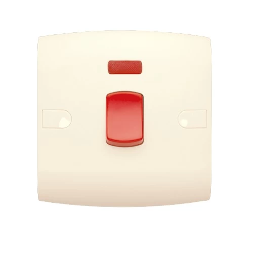 مفتاح كهرباء مفرد ثنائي القطب مع مؤشر ليد 45 امبير ألف كلاسيك الفنار مقاس 7×7 سم اللون بيج