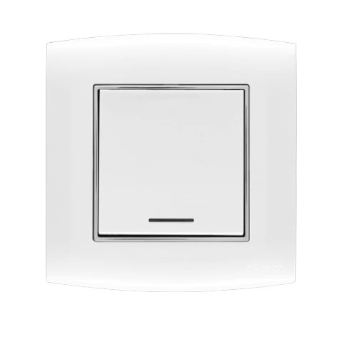 مفتاح كهرباء عريض مفرد ثنائي القطب مع مؤشر ليد 20 امبير أمنية الفنار مقاس 7×7 سم اللون ابيض بحلقة كروم