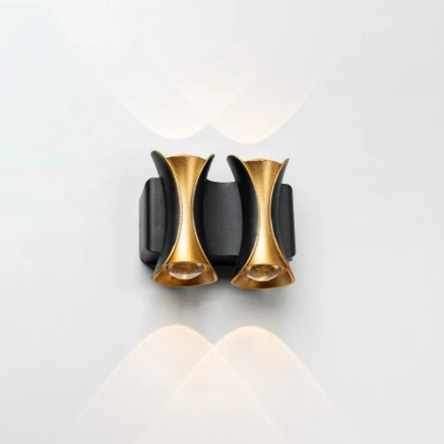ابليك جداري LED للسور الخارجي بتصميم عصري، أبعاد 10×8×4.5 سم، اسود و ذهبي