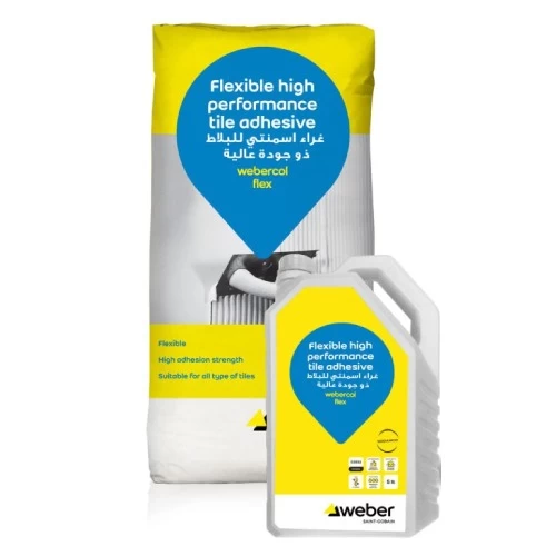 Cementitious Flexible Tile Adhesive Webercol Flex, SODAMCO-Weber Brand, It is flexible, water and chemical resistant, for indoor and outdoor use, easy to apply non-slip, can be used for most types of tiles.