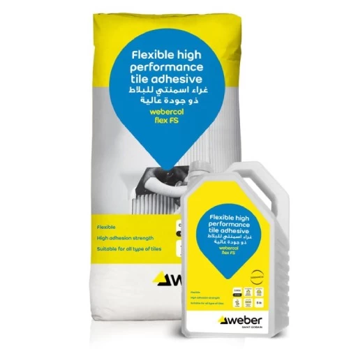 Flexible Cementitious Tile Adhesive Webercol Flex FS, SODAMCO-Weber Brand, Specially designed for indoor and outdoor walls and floors It is characterized by water resistance and has a wonderful bonding effect, chemical resistance and high adhesion strength, easy to apply suitable for tough substrates and for a wide range of tiles, for application on floors, ceilings and walls.