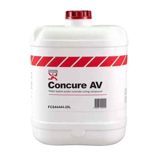 Concure AV A Chemical Concrete Additive For Curing Cracking Size 20 liters [Fosam Company], is an aliphatic alcohol evaporative inhibitor used during the placement of fresh concrete to significantly reduce cracks resulting from unfavorable weather conditions. It is supplied as a concentrate that is diluted on site with water.