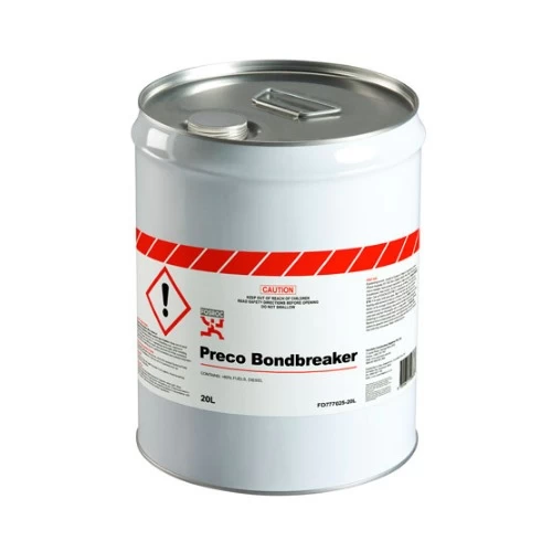 Preco Bondbreaker Concrete Form Release Agent Size 20L Fosam Company,Designed for use in prefabricated or tilt-up panel construction. It can significantly reduce surface defects including pinholes in concrete finish and ensure easy removal of formwork