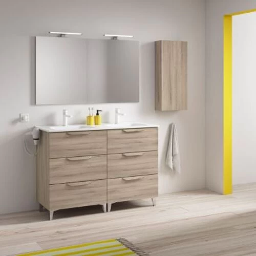 Double bathroom cabinet with 2 sinks and mirror, classic design, beige color, size120 cm, that resist moisture and are built to handle daily bathroom use, made of high-quality materials, it is water-resistant.