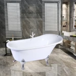 Bathtub size 160 x 77 cm, height 57.5 cm, white color, featuring a sleek and modern design that adds an aesthetic touch.