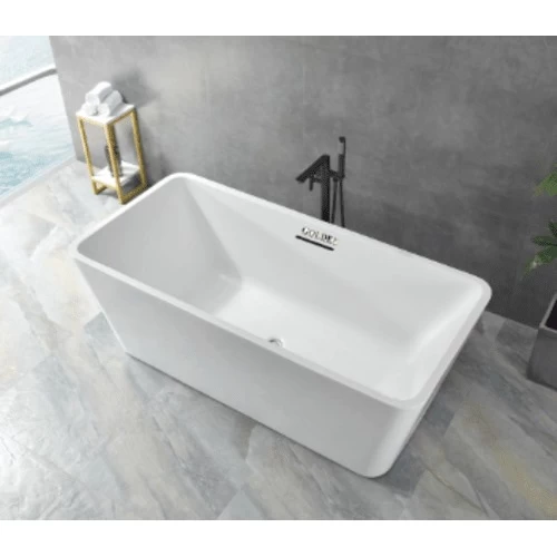 Golden acrylic rectangular shape bathroom bathtub white, size 75x130 cm. Available in a stunning, sleek modern design, it features independent and sturdy one piece construction to ensure safety and rigidity. The entire body is soaked in extra depth.