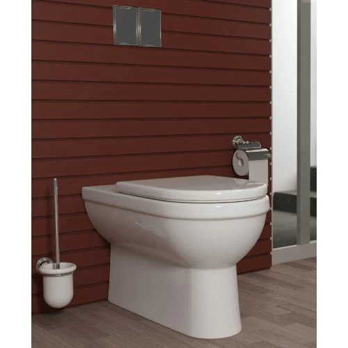 Floor mounted wc one piece with siphon and seat cover SC3, product by Saudi Ceramics, features an advanced drainage system, and can be easily cleaned using regular household cleaners, available in different shapes and sizes with the highest quality and best prices.